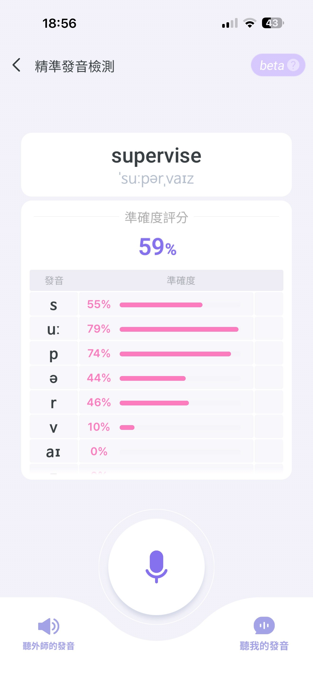 發音練習 | 字母分段評分、視覺化檢測 | 對話中 AI 即時糾正 |