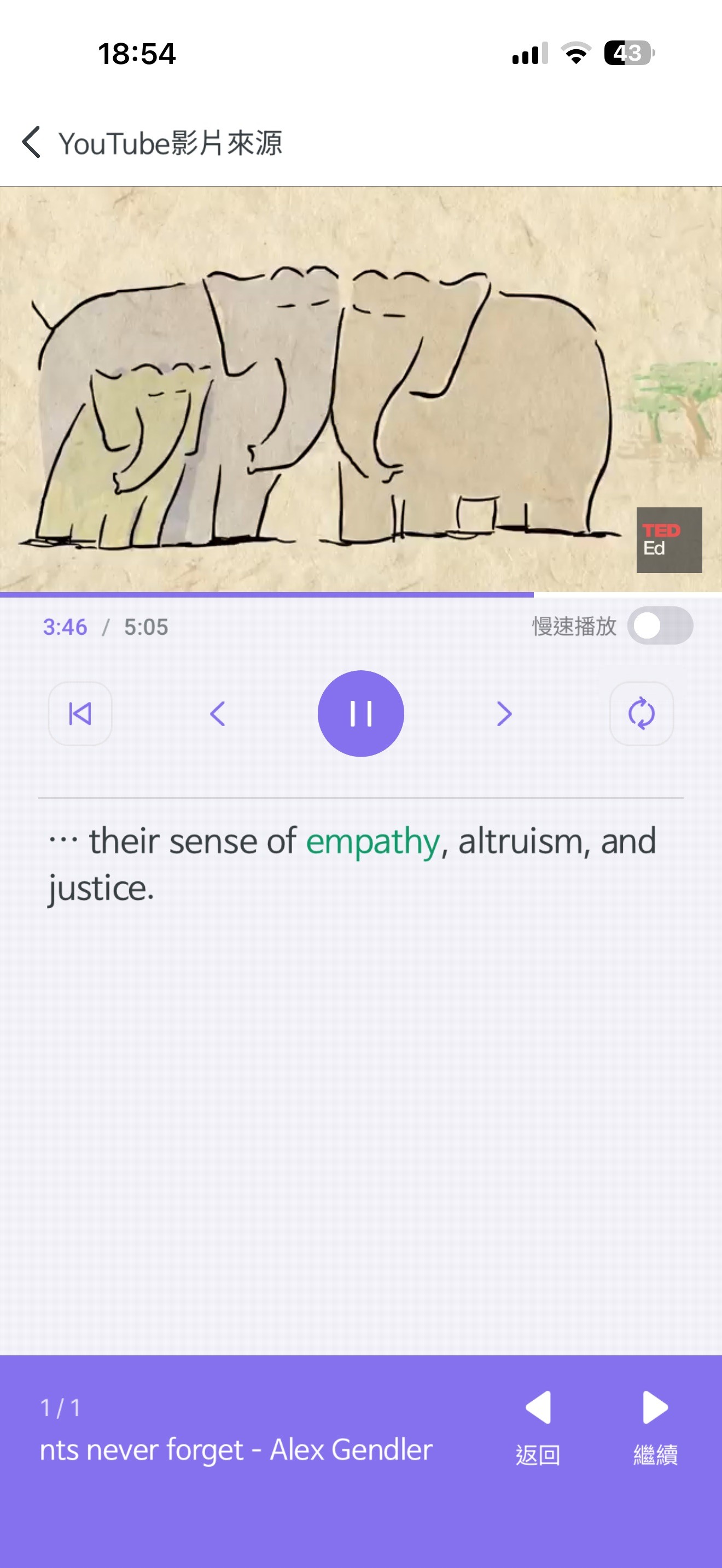 它的題目設計短且集中,每一輪都能快速完成並獲得回饋;單字例句豐富、還會搭配 YouTube 實際影片,是幫助模仿母語者發音的好工具。