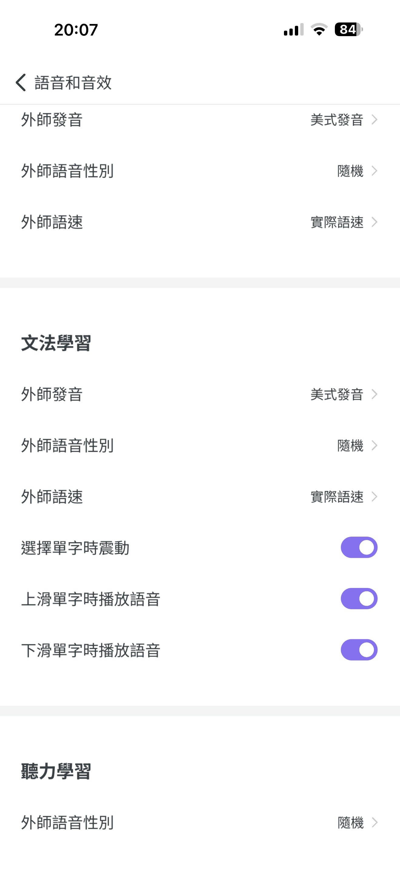 語音設定 | 2 段語速、美式/英式(英式測試中) | 4 段語速、12 種聲音、4 種腔調 |