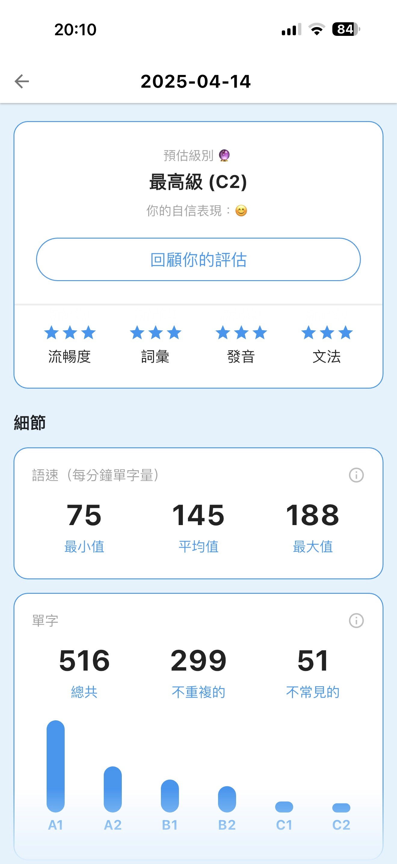 數據回顧 | 詞彙量、全國PR 值、排名分數 | 詞彙量、CEFR 等級、語速與詞彙分析 |